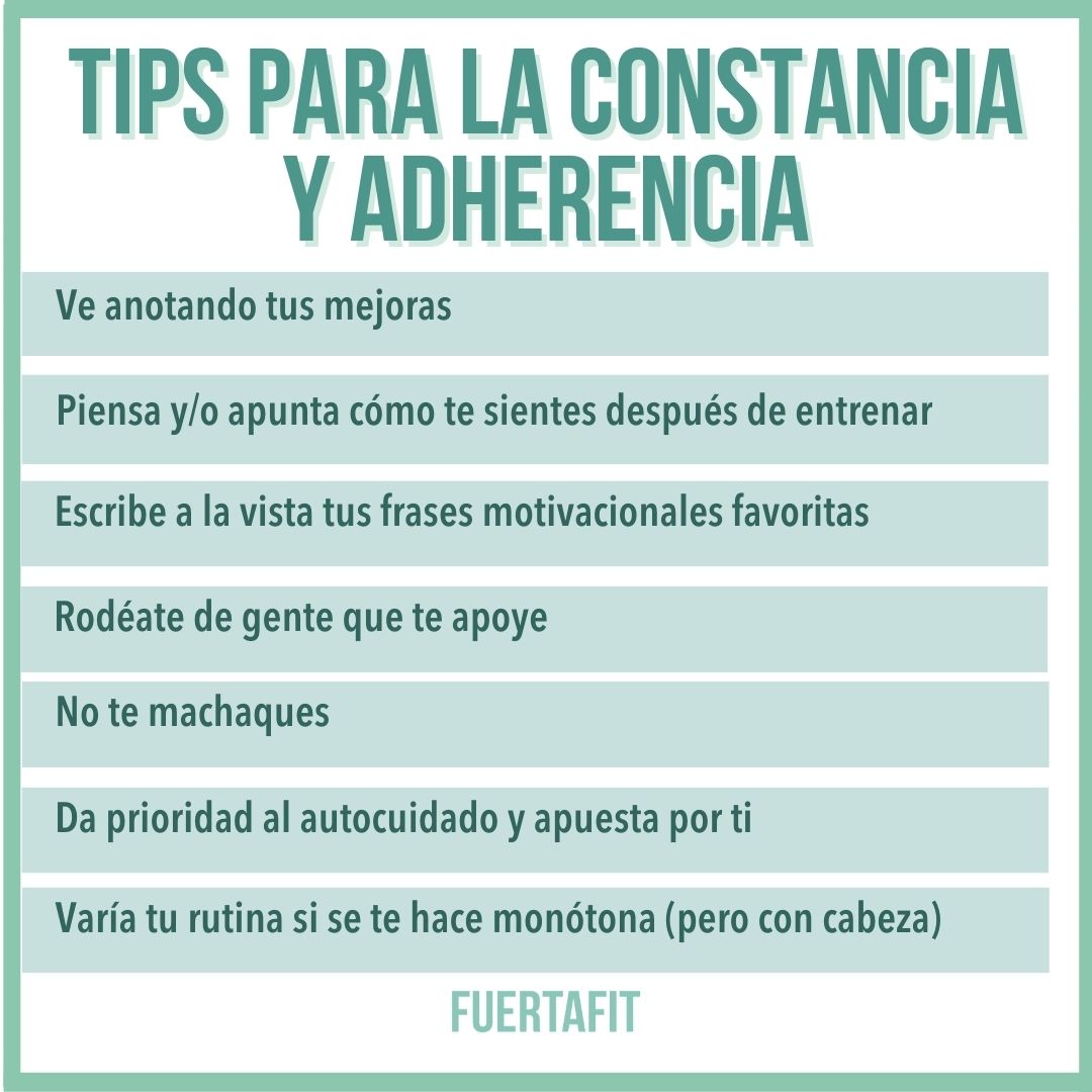 Después de habernos puesto un poco filosóficos y contarte, en resumen, cómo se puede generar un hábito con constancia y disciplina, queremos que sepas una serie de consejos que te harán mantener estos principios y llegar a esa adherencia tan necesaria.